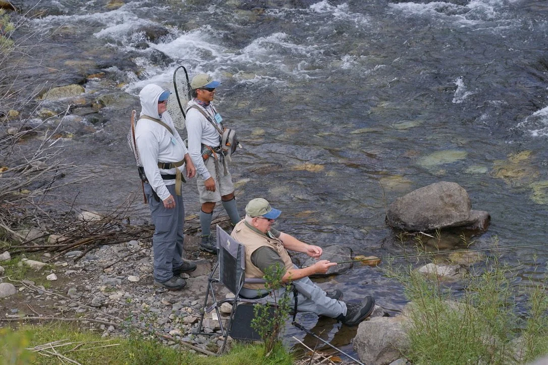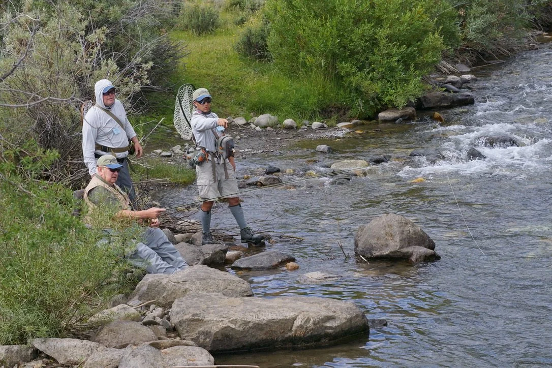 At approximately 7000 feet elevation the days are warm and the nights are cool. By mid-August the snow pack has run off just about as much as it’s going to offer wonderful wading opportunities. If you’re nervous about being on the river, have no fear. We pair each guest with at least one fishing friend who knows the streams and where to safely access them to get you onto the fish. Rather not fish during one of the sessions, no worries, we can take you sightseeing instead. There’s plenty to see up there. It’s your time. We’re here to make it as memorable and as enjoyable as possible.